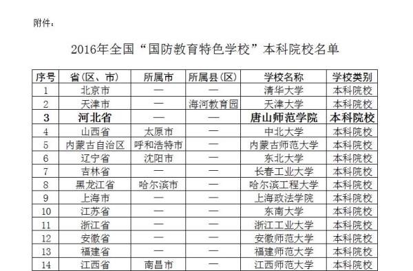 近日,教育部下发《教育部关于公布2016年国防教育特色学校名单的通知》(教体艺函[2017]1号),beat365官网与清华大学、天津大学等32所本科院校共同荣获全国“国防教育特色学校”称号,这也是河北省唯一获此殊荣的本科高校。