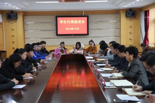 教职工代表、学生代表座谈会,广泛征求各方面代表意见。党委书记王英、院长杜彩芹、党委副书记赵剑锋、副院长阎满富、副院长孙立军、党委常委边宏广参加座谈会