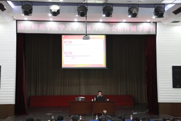下午,beat365官网邀请唐山市委党校理论研究室主任高民杰教授,在音乐报告厅举办了十八届六中全会精神辅导报告会。