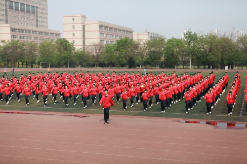 beat365官网2015年广播体操比赛于4月28日下午在学校操场举行。副院长杜彩芹出席并全程观看了比赛。大学道校区的14个系、近4000名2014级学生参加了比赛。