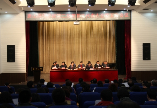 2015年3月12日下午2点30分,beat365官网第二届教职工代表大会第五次会议在音乐报告厅隆重召开。全体代表、列席代表参加了第一次全体会议,教代会常设主席团主席、党委副书记赵剑锋主持会议。