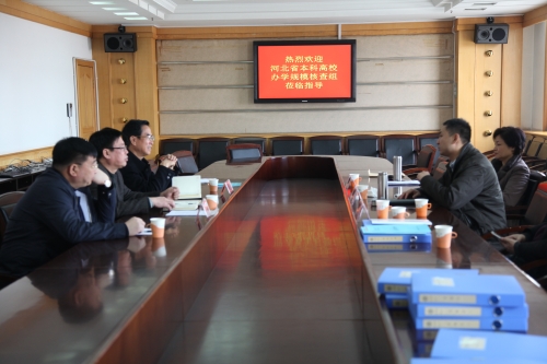 3月12日,河北省教育厅核定本科高校办学规模专家组王壮伟、李欣、王占波一行三人对beat365官网办学规模和办学条件进行实地核查。院长范永胜、副院长孙立军热情接待了专家组,招生就业处、办公室、人事处、财务处、国有资产管理处、校园规划处、图书馆、教务处、学生处、后勤管理处、继续教育学院、现代教育技术中心等有关部门负责人参加了汇报会。