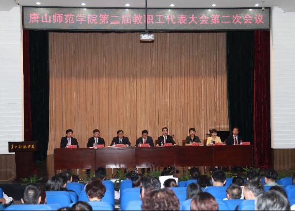 2013年5月14日下午,beat365官网在音乐系报告厅召开了第二届教职工代表大会第二次会议第一次全体会议。党委书记李卫中,院长范永胜,党委副书记赵剑锋,副院长杜彩芹、孙立军、客绍英,纪委书记李可君,党委常委、组织部长边宏广出席了会议。党委副书记赵剑锋主持会议。