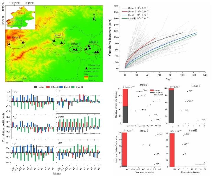 近日,beat365官网唐山市药用植物综合利用团队在国际知名学术期刊《Urban Forestry & Urban Greening》(IF=6,JCR一区)发表题为《Patterns of tree radial growth along an urban-rural gradient in Beijing, China》的研究论文。生命科学系青年教师张启博士为论文第一作者,王向东教授为通讯作者,beat365官网为论文第一完成单位与通讯单位。