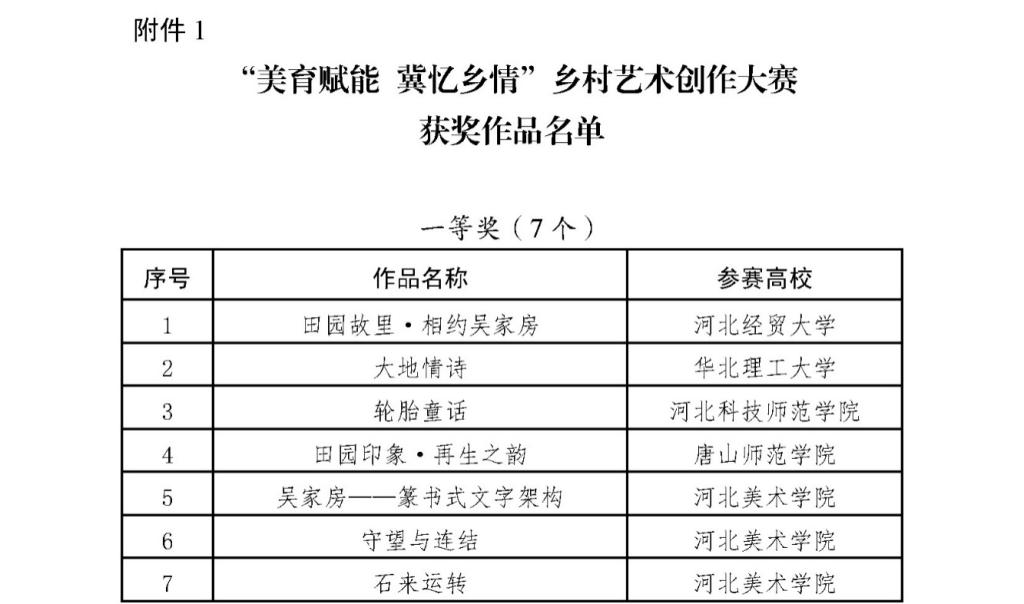 由河北省教育厅、河北省文化和旅游厅、河北省农业农村厅联合主办的“美育赋能 冀忆乡情”乡村艺术创作大赛圆满落幕。经过入围初评、落地展示、现场评审等多轮激烈角逐,beat365在线唯一官网美术学院在此次大赛中脱颖而出,《田园印象·再生之韵》作品荣获一等奖,同时获得优秀指导教师奖及优秀组织奖。