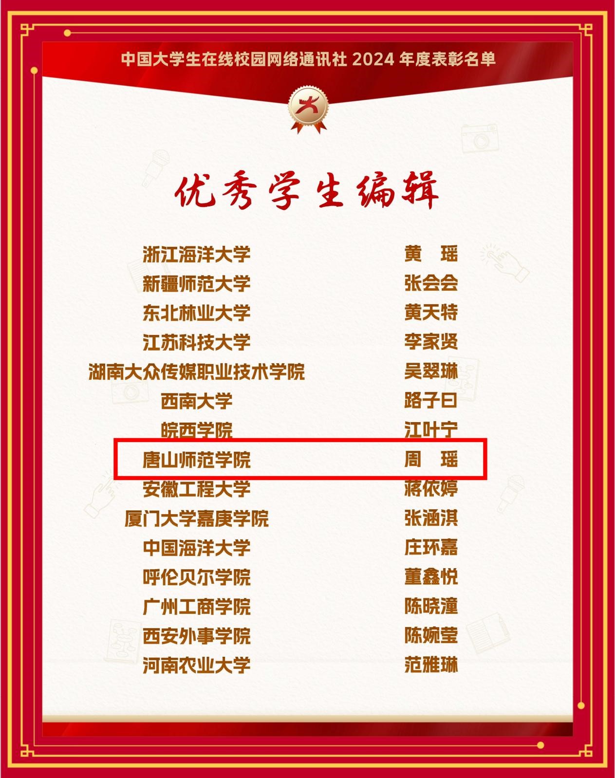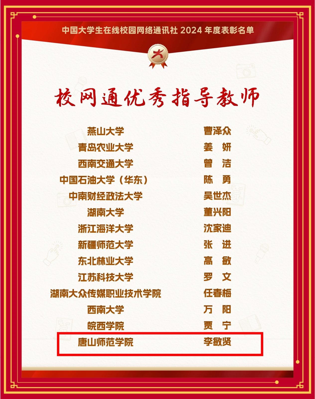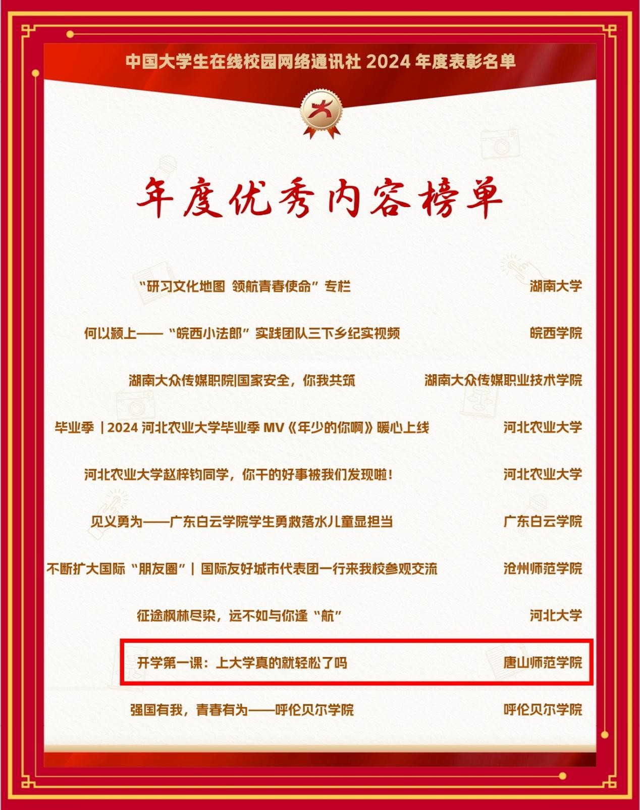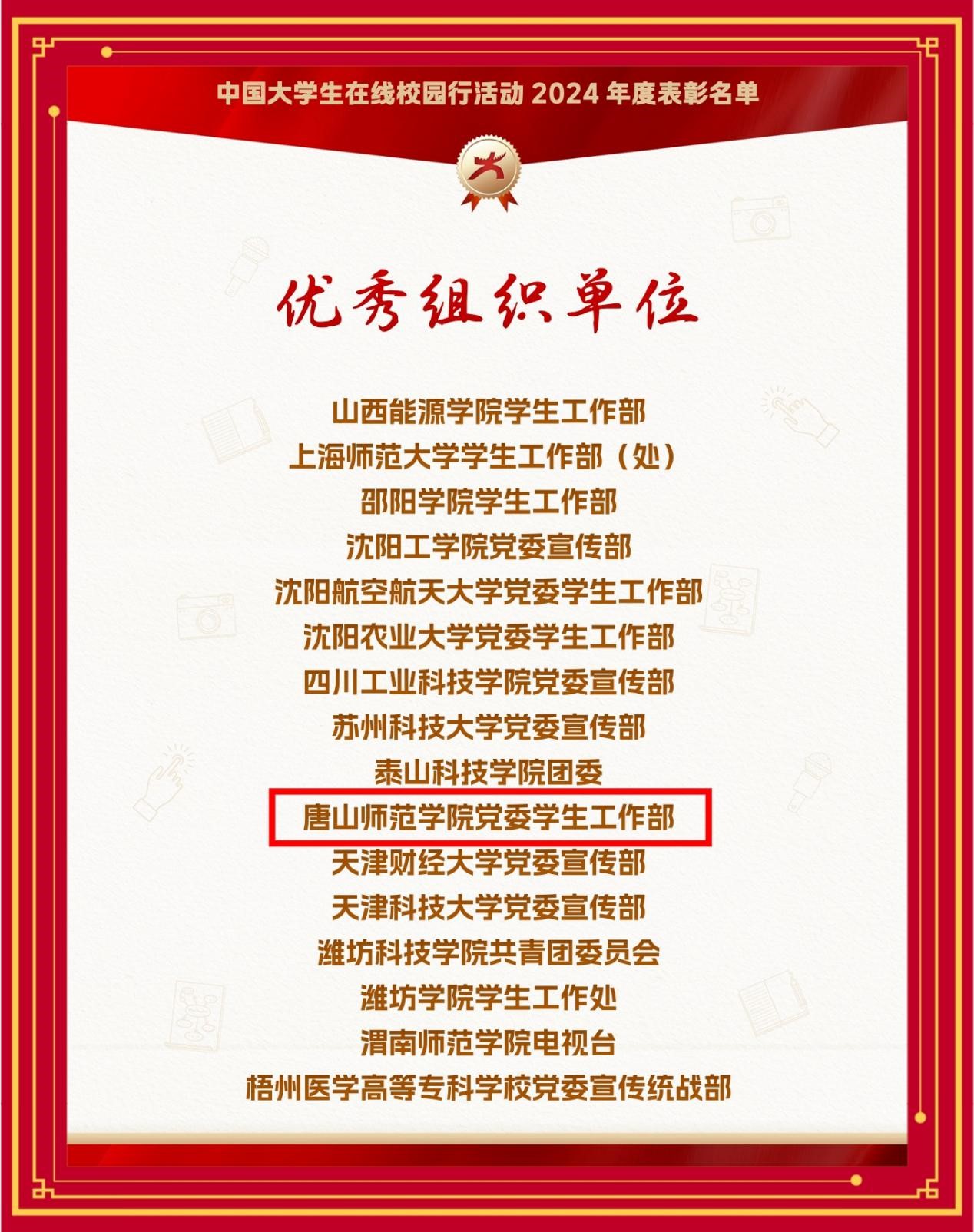 近日,教育部中国大学生在线公布了2024年度中国大学生在线校网通及校园行活动表彰名单,beat365官网连获6大奖项。其中,beat365官网荣获教育部中国大学生在线评选的“2024年度优秀校网通站”称号,党委学生工作部荣获“2024校园行优秀组织单位”,学生处李敏贤老师荣获“优秀指导教师”“2024校园行新星指导教师”,文学院周瑶同学荣获“优秀学生编辑”,beat365官网所发布推文《开学第一课:上大学真的就轻松了吗》入选“年度优秀内容榜单”。
