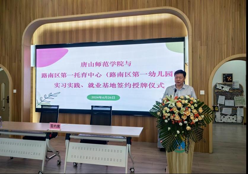 副院长李子林,教育学院党委书记贾长胜、副书记董慧彬、学前教育教研室主任么娜一行四人来到路南区第一托育中心。在简短而隆重的实习实践、就业基地授牌仪式中,双方进行了深入的交流与互动。