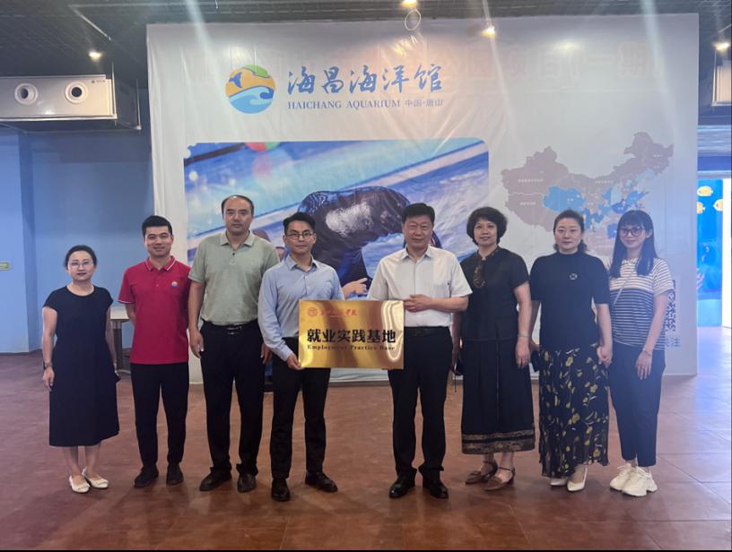 为深化校企合作,拓宽学生就业渠道,提高人才培养质量,beat365在线唯一官网海洋学院与唐山海昌海洋馆成功举行了访企拓岗就业实践基地挂牌仪式。6月21日,副校长李子林、招生就业处处长李丽娜,海洋学院党总支书记金佳勇、院长蔡玉梅、实训室主任柴天姿、招生就业办公室主任杜歌以及唐山海昌海洋馆总经理袁野等共同参加了揭牌仪式。