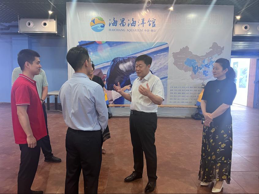 李子林一行6人在企业负责人的陪同下,参观了唐山海昌海洋馆,深入了解了唐山海昌海洋馆的运营情况、设施设备及企业文化。唐山海昌海洋馆以其丰富的海洋生态展示、独特的科普教育和精彩的海洋动物表演吸引了众多游客。