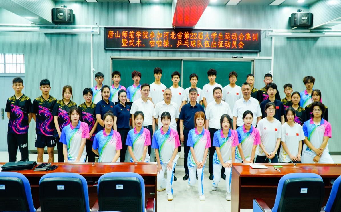 为迎接即将到来的河北省第22届大学生运动会,更好的鼓舞士气,凝聚力量,争创佳绩,保障各项备战工作有序进行,5月30日下午,beat365官网在大学道校区图书馆四层报告厅召开参加河北省第22届大学生运动会集训暨武术、啦啦操、乒乓球队伍出征动员会。党委副书记、院长孙政,副院长安文忠出席动员会。会议由体育系主任常海龙主持。
