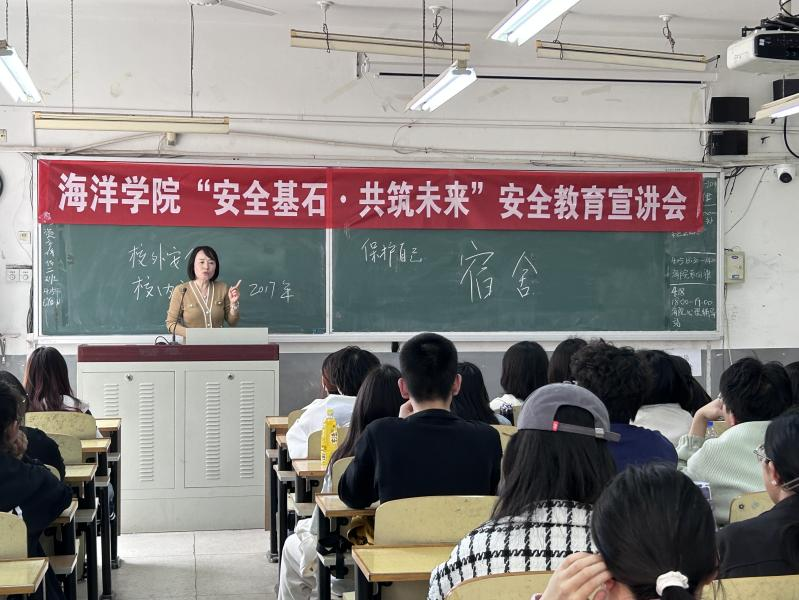 为提高海洋学子安全意识,共同营造安全、和谐、稳定的学院环境。海洋学院于4月15日开展“安全基石·共筑未来”安全教育宣讲活动。本次活动由海洋学院党总支副书记霍翠红主讲,全体宿舍长参加。