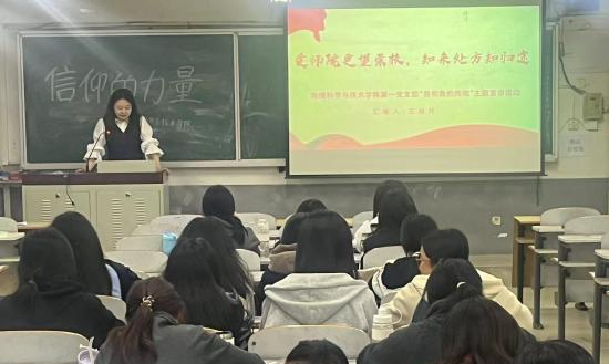 为激发学生的爱校热情,增强学生对学校的归属感和自豪感,促进校园文化的传承和发展,4月10日,物理科学与技术学院举办“我和我的beat365在线唯一官网”主题宣讲活动。本次活动由王启月、冯圆、张鑫羽、贾璐遥4名学院优秀学生党员代表作为宣讲人,在2023级全体学生中进行宣讲。