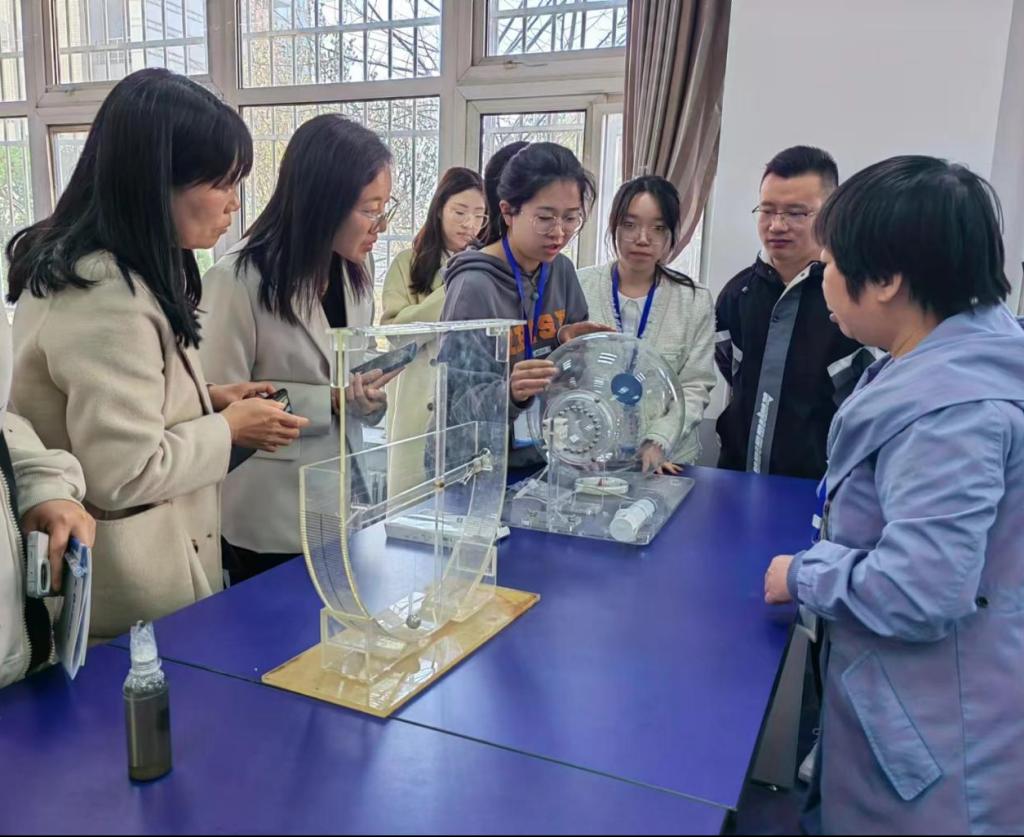 活动伊始,曹丽君代表物理科学与技术学院对裕华道第二小学领导老师的到来表示热烈欢迎,并陪同裕华道第二小学的领导老师们依次参观了力学实验室、电工电路实验室和电磁学实验室等。在参观过程中,裕华道第二小学的领导老师们对学院师生自制的教具产生了浓厚的兴趣。物理科学与技术学院学生代表为领导老师们进行了详细的讲解和展示,展现物理学科的魅力。