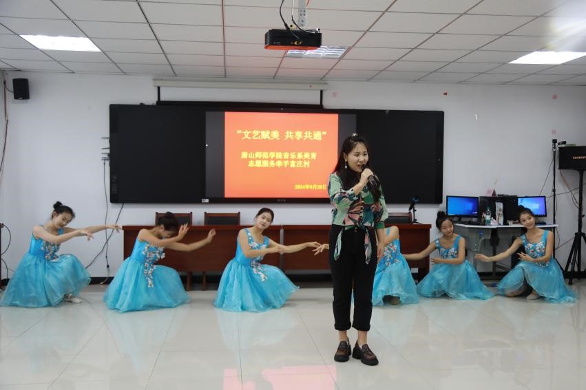 活动开始,富庄村书记代表全村村民对beat365在线唯一官网音乐系的师生的到来表示热烈的欢迎,同时对能够为本村进行美育志愿服务表示衷心的感谢。随后,音乐系师生表演了歌曲《我爱你中国》《海恋》《美丽的心情》《我的爱人你可听见》《我的深情为你守候》《公仆赞》《灯火里的中国》,器乐曲《上春山》《赛马》,舞蹈《那年花开》《傣韵》等,最后由我系师生共同合唱《我和我的祖国》,祝福伟大的祖国繁荣昌盛。精彩的演出赢得了在场村民的阵阵掌声,现场气氛热情高涨。唐山市影视家协会人员参加活动。