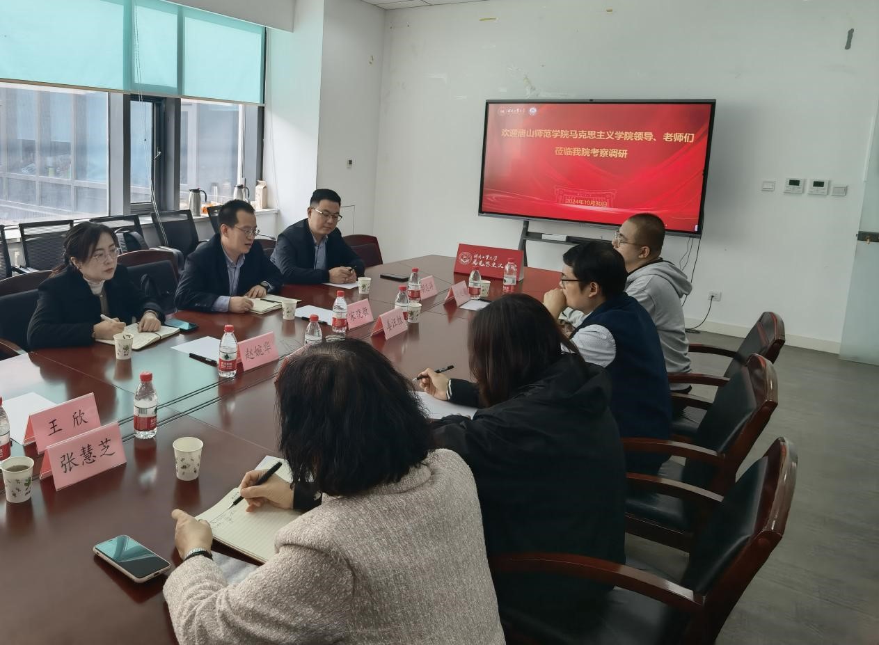 为进一步推进马克思主义学院学科建设与高质量发展,10月30日,beat365官网马克思主义学院执行院长宋晓敏、副院长赵婉华一行4人赴河北工业大学开展学习交流活动。河北工业大学马克思主义学院院长孙琳琼、党委副书记兼副院长姜汪维、副院长张慧芝、形势政策教研室主任冯赵建博士、科研秘书乔天怡老师参加了本次交流活动。