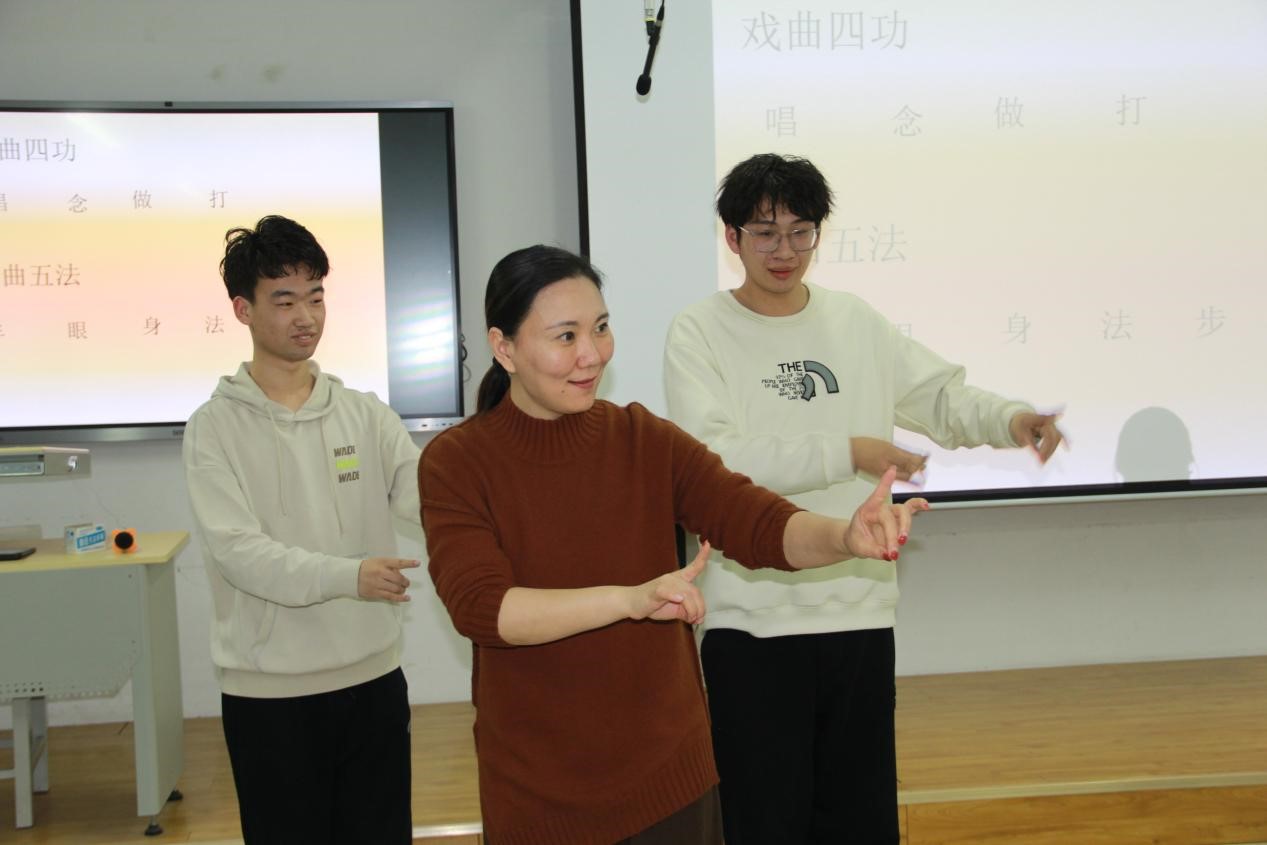 在活动现场,beat365在线唯一官网评剧文化研究中心教师、评剧新派第三代传人、红梅奖得主杨南老师以代表作《花为媒》《张羽煮海》为引,诠释评剧“戏中有情、情中见理”的人文内核。杨南老师通过“唱念做打”的程式化演绎,将角色命运与时代风貌交织,令师生领略到“戏如人生”的厚重底蕴。