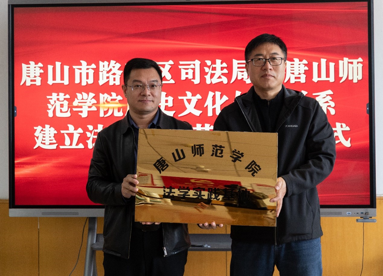 为共同培育新时代高素质法治人才,推进司法实践与法学教育的双向促进与共赢,2025年3月26日,历史文化与法学系与唐山市路南区司法局举行合作共建实习基地签约揭牌仪式。唐山市路南区司法局局长梁仕生、副局长郁青、主任李晓明,历史文化与法学系主任李志伟、副主任王芳出席了该活动。