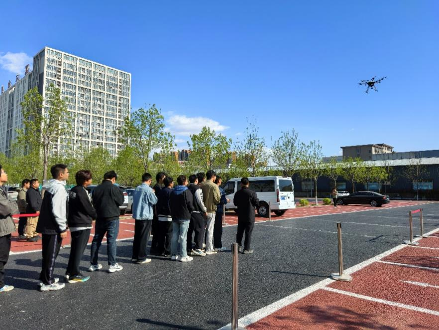 师生在教练指导下,室外场地试飞旋翼教练机,直观感受工程逻辑与动态美学,为学生未来参与数字媒体艺术创作提供了技术支撑。