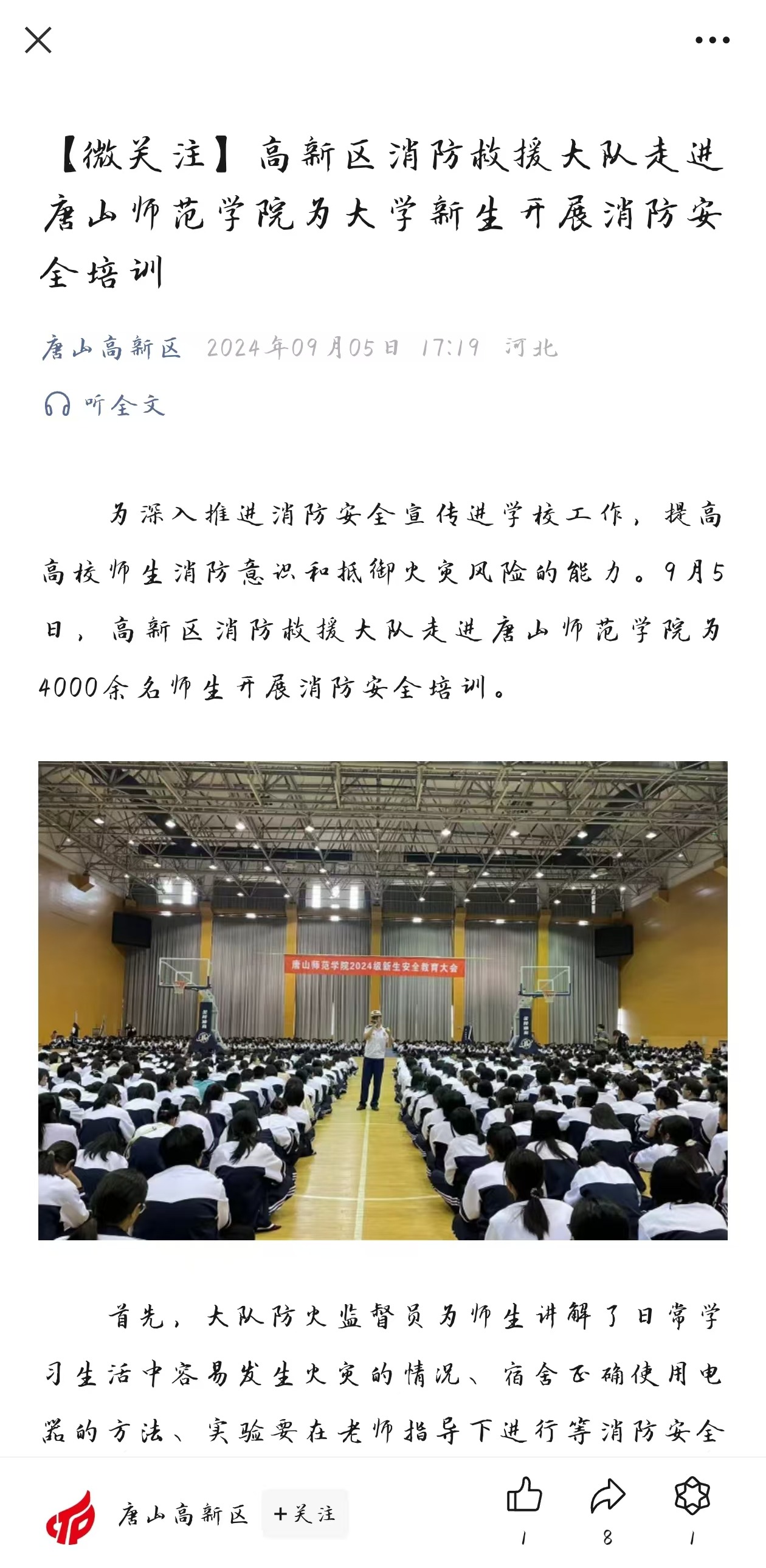 为深入推进消防安全宣传进学校工作,提高高校师生消防意识和抵御火灾风险的能力。9月5日,高新区消防救援大队走进beat365在线唯一官网为4000余名师生开展消防安全培训。