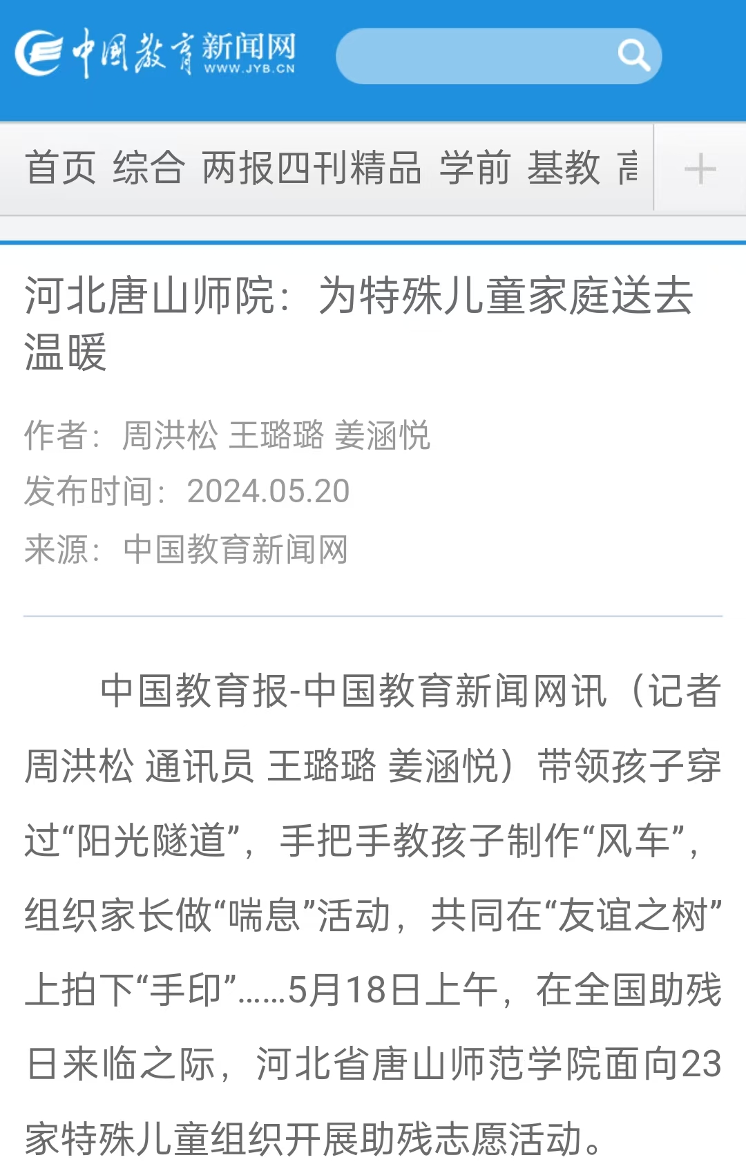 中国教育新闻网;http://m.jyb.cn/rmtzcg/xwy/wzxw/202405/t20240520_2111197124_wap.html