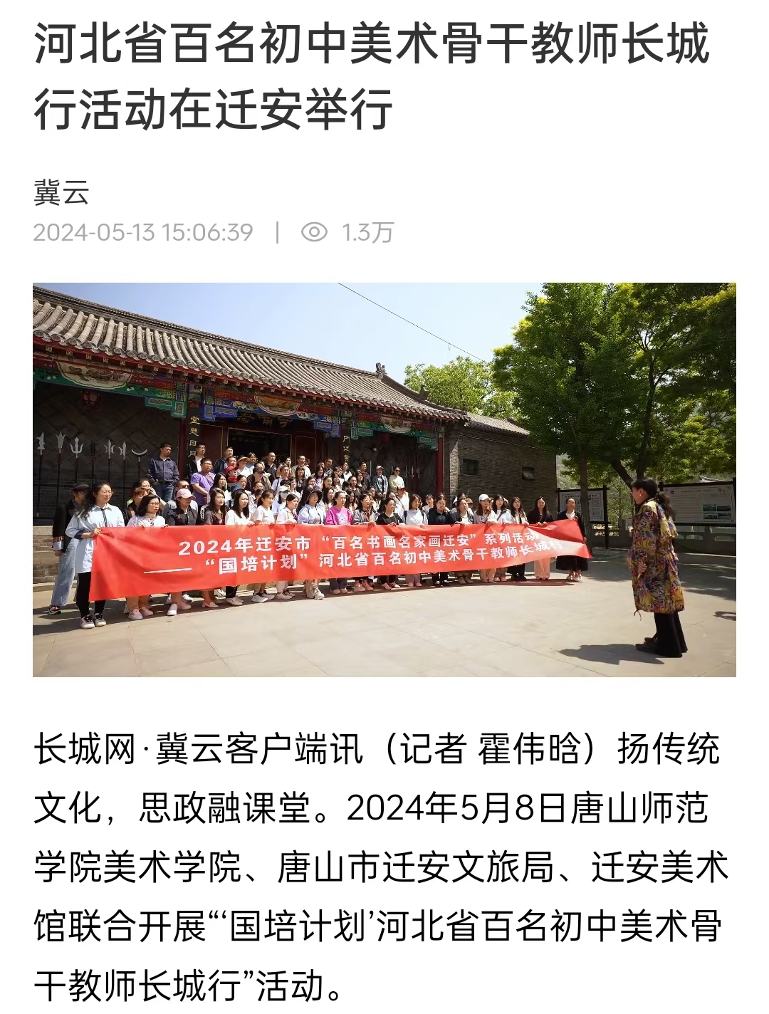 扬传统文化,思政融课堂。2024年5月8日beat365在线唯一官网美术学院、唐山市迁安文旅局、迁安美术馆联合开展“‘国培计划’河北省百名初中美术骨干教师长城行”活动。