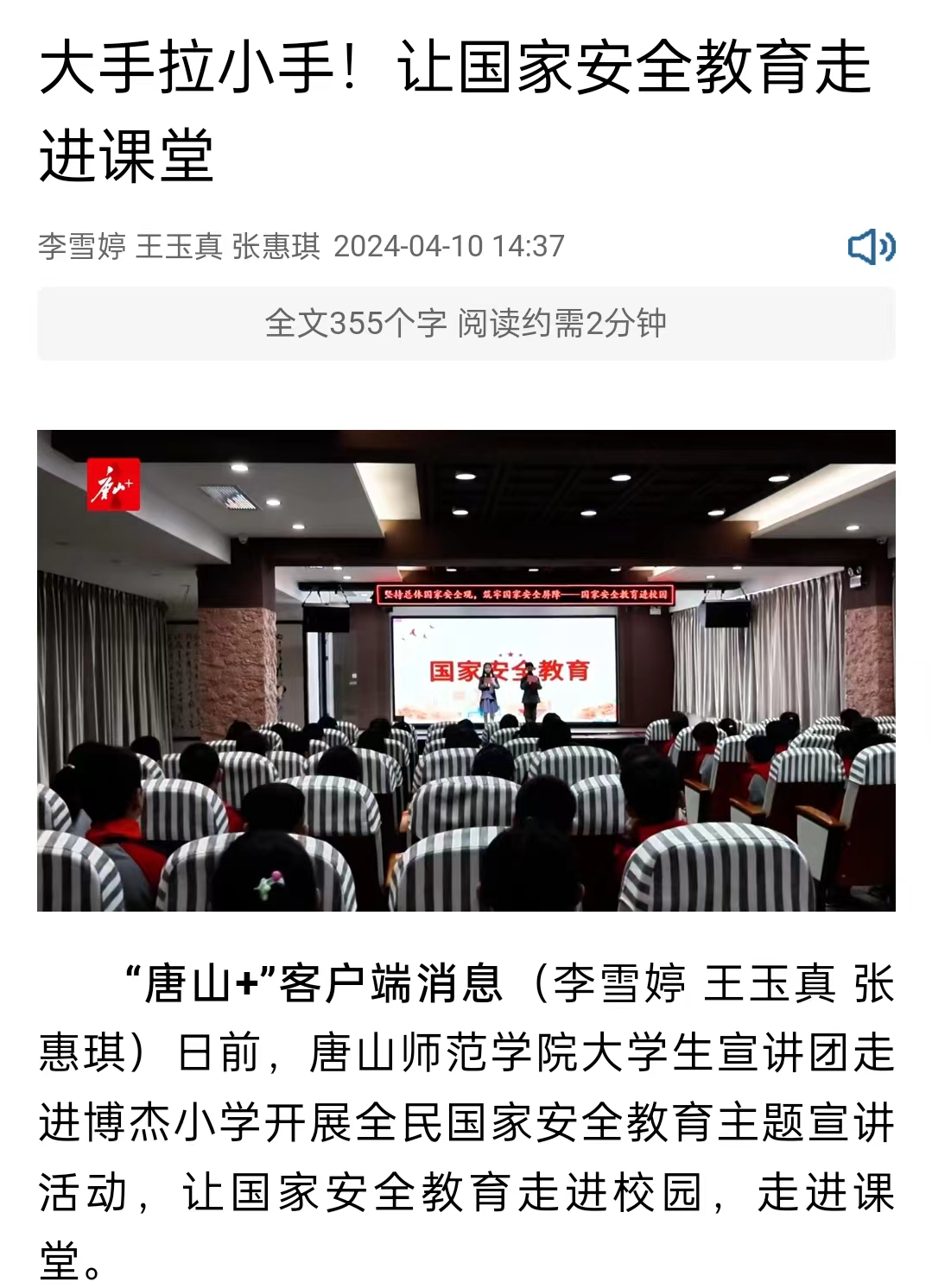 日前,beat365在线唯一官网大学生宣讲团走进博杰小学开展全民国家安全教育主题宣讲活动,让国家安全教育走进校园,走进课堂。