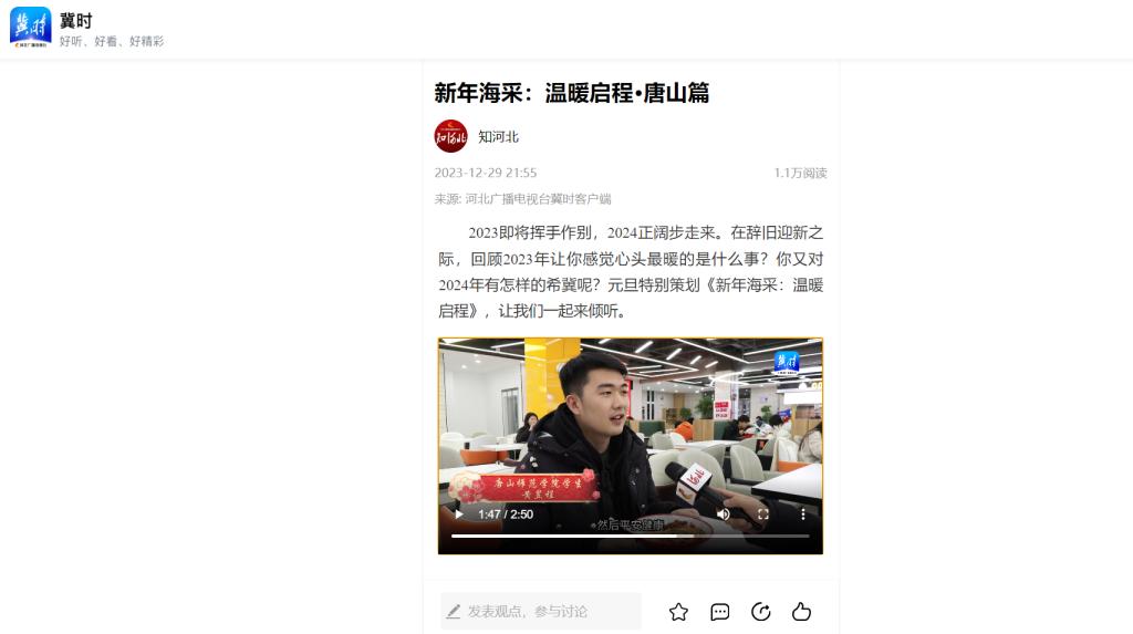 beat365官网学子在河北新闻联播、冀时媒体平台为大家送新年祝福。