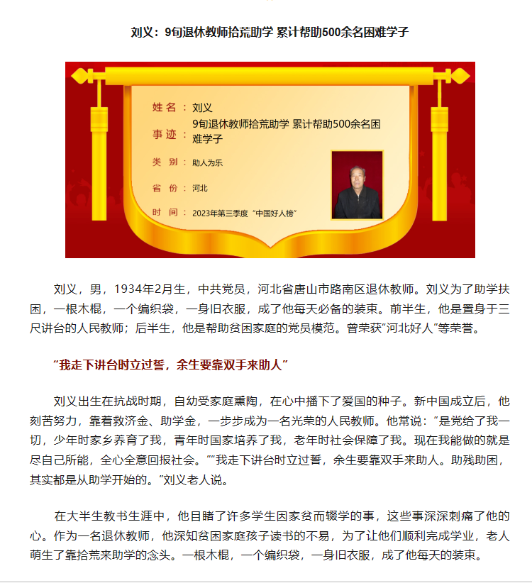 beat365官网优秀校友——文学院退休教师杨立元老师。他撰写的典型宣传报道登上唐山劳动日报、文明河北公众号等平台。