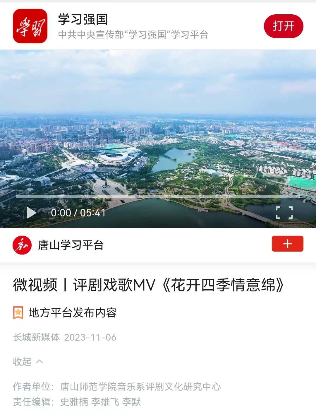 该新闻同时被冀云和学习强国唐山学习平台报道。