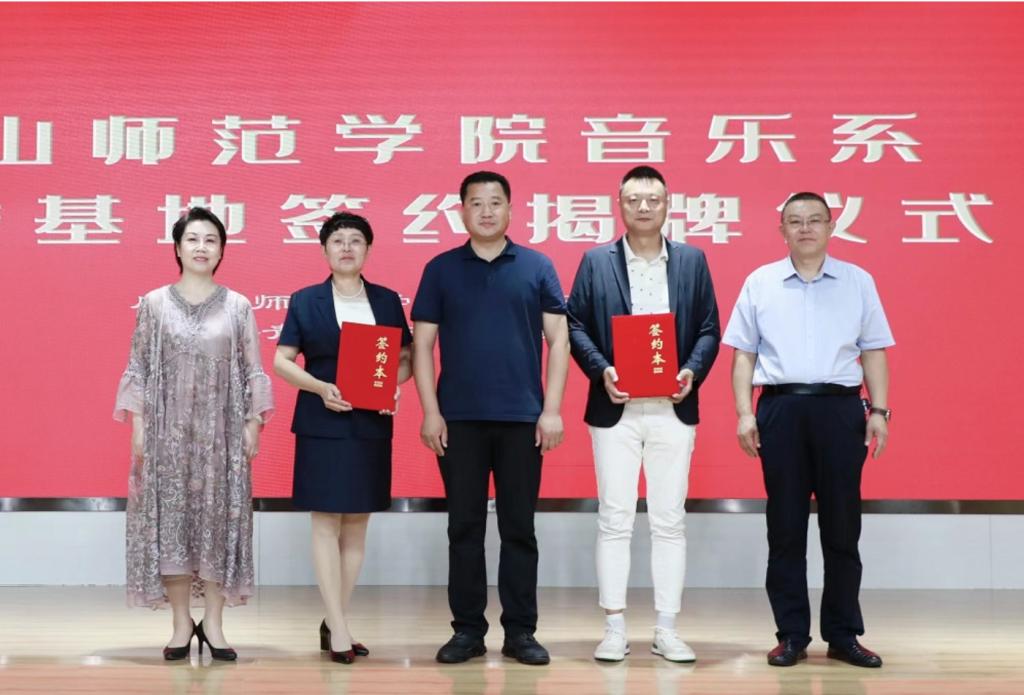 为传承优秀传统文化,弘扬“冀东文艺三枝花”,培养优秀传承人才,7月30日上午,beat365在线唯一官网音乐系与乐亭县青少年校外活动中心成功举行签约揭牌仪式。唐山市教育局党组成员、副局长赵乾,beat365在线唯一官网音乐系党总支书记徐东芸,县教育局党组书记、局长张永涛,beat365在线唯一官网、市教育局等相关领导和嘉宾出席签约揭牌仪式。县教育局教育科(体卫艺)相关人员,县直学校(幼儿园)、乡镇教育组主管领导,学校艺术教师参加活动。签约揭牌仪式由县教育局党组成员、副局长郑海波主持。