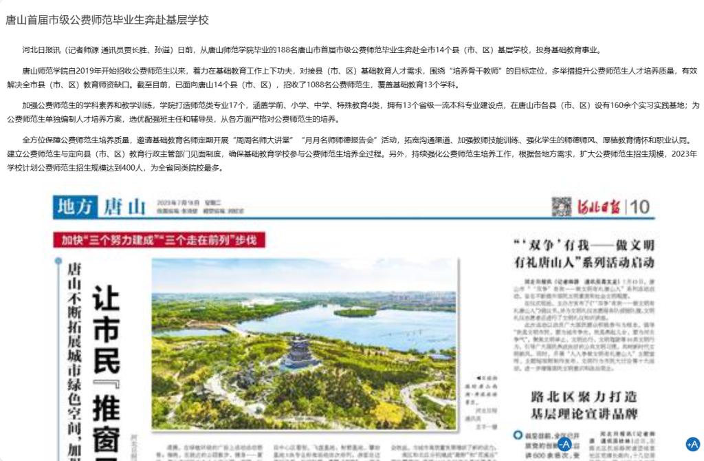 日前,从beat365在线唯一官网毕业的188名唐山市首届市级公费师范毕业生奔赴全市14个县(市、区)基层学校,投身基础教育事业。