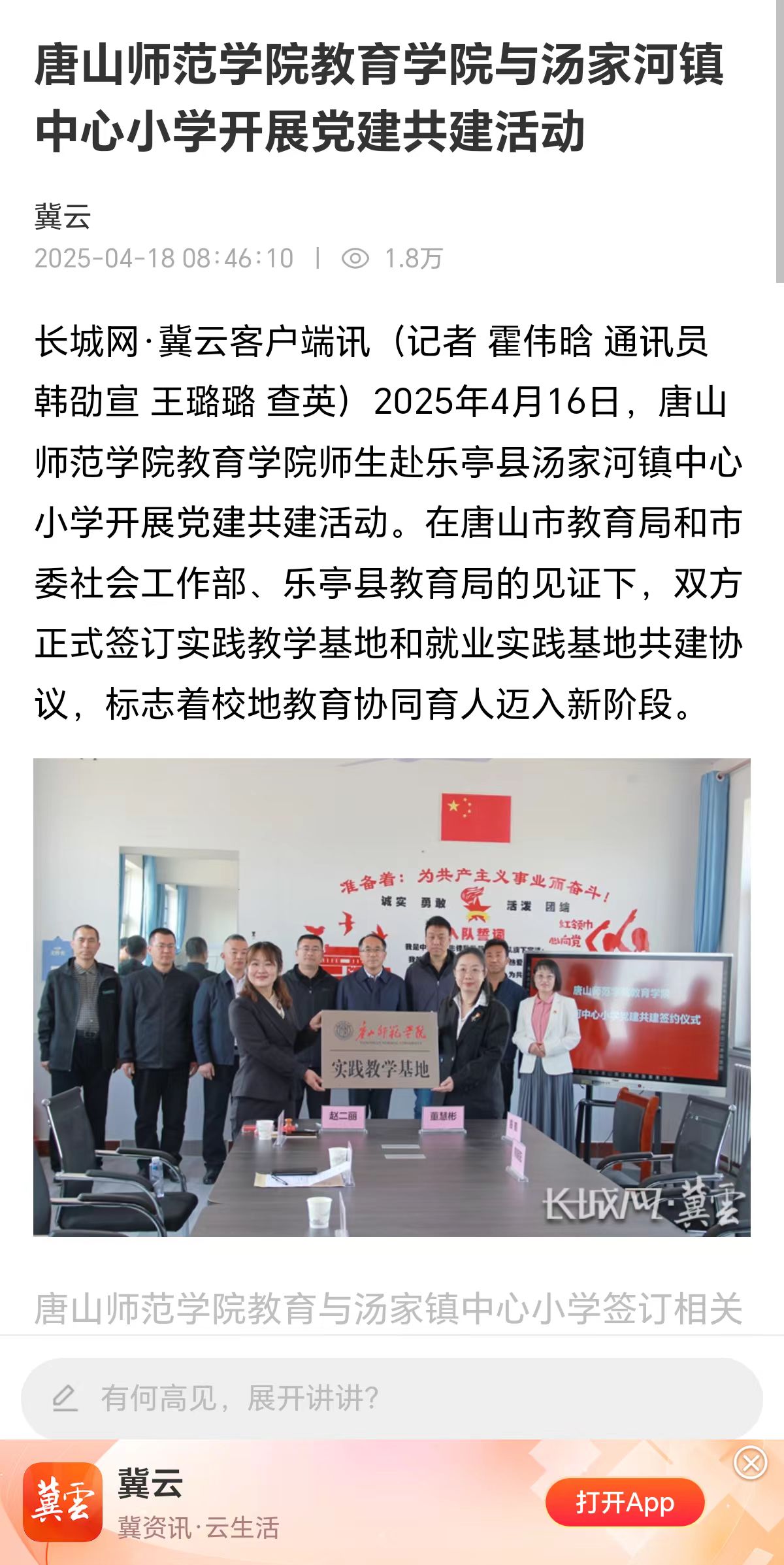 4月16日,beat365在线唯一官网教育学院与乐亭县汤家河镇中心小学举行了一场意义深远的党建共建活动,吸引了市教育局、汤家河镇政府等多方关注,活动现场气氛热烈而庄重。