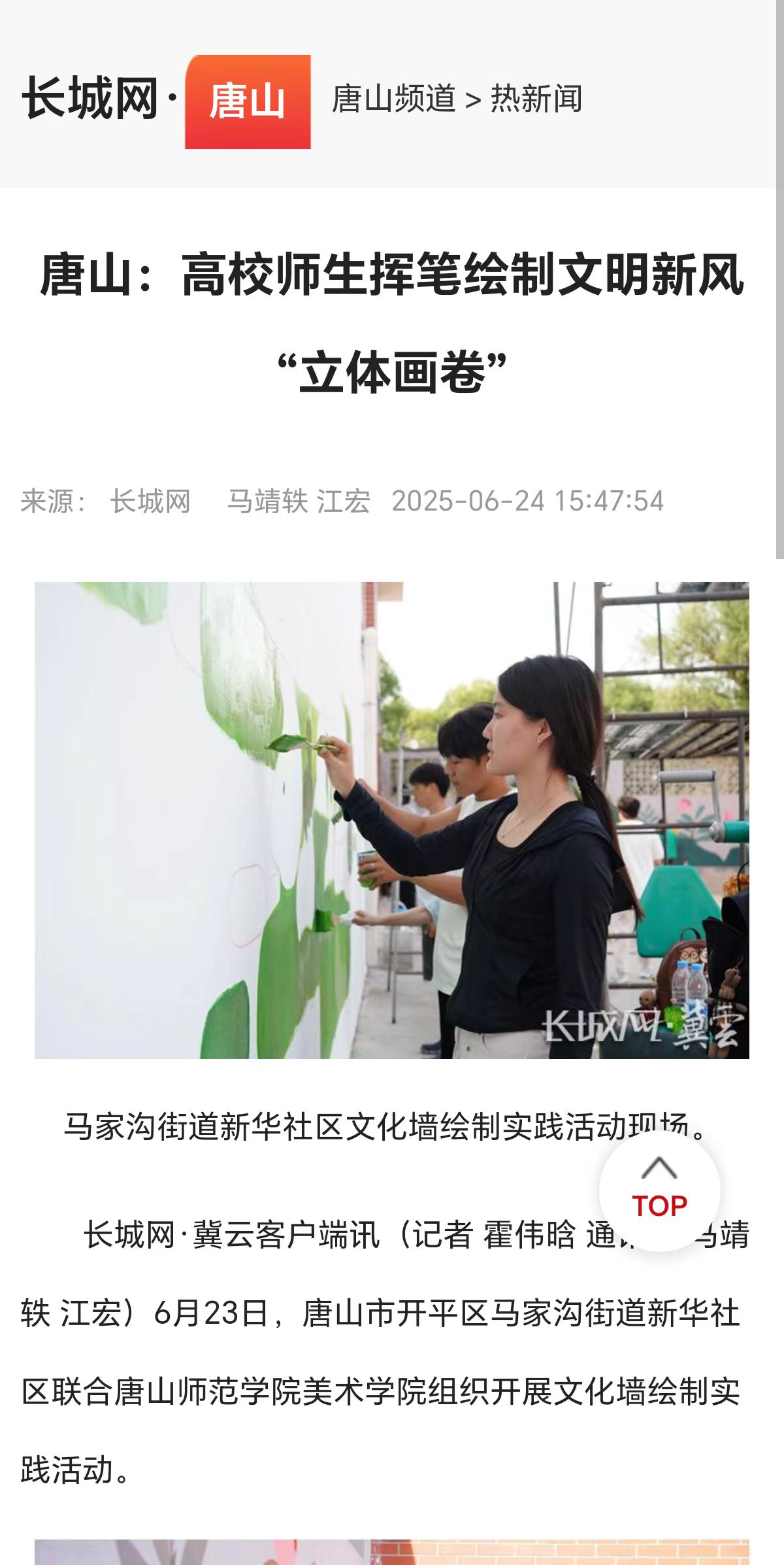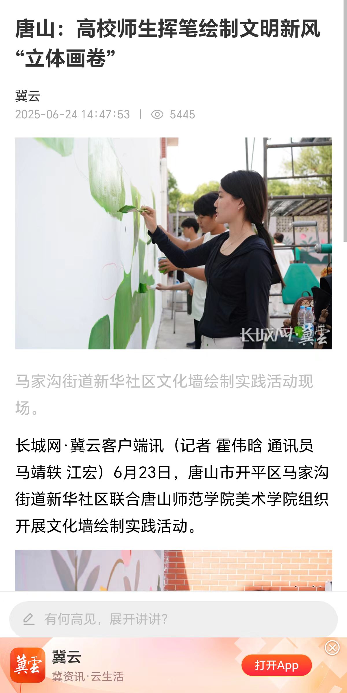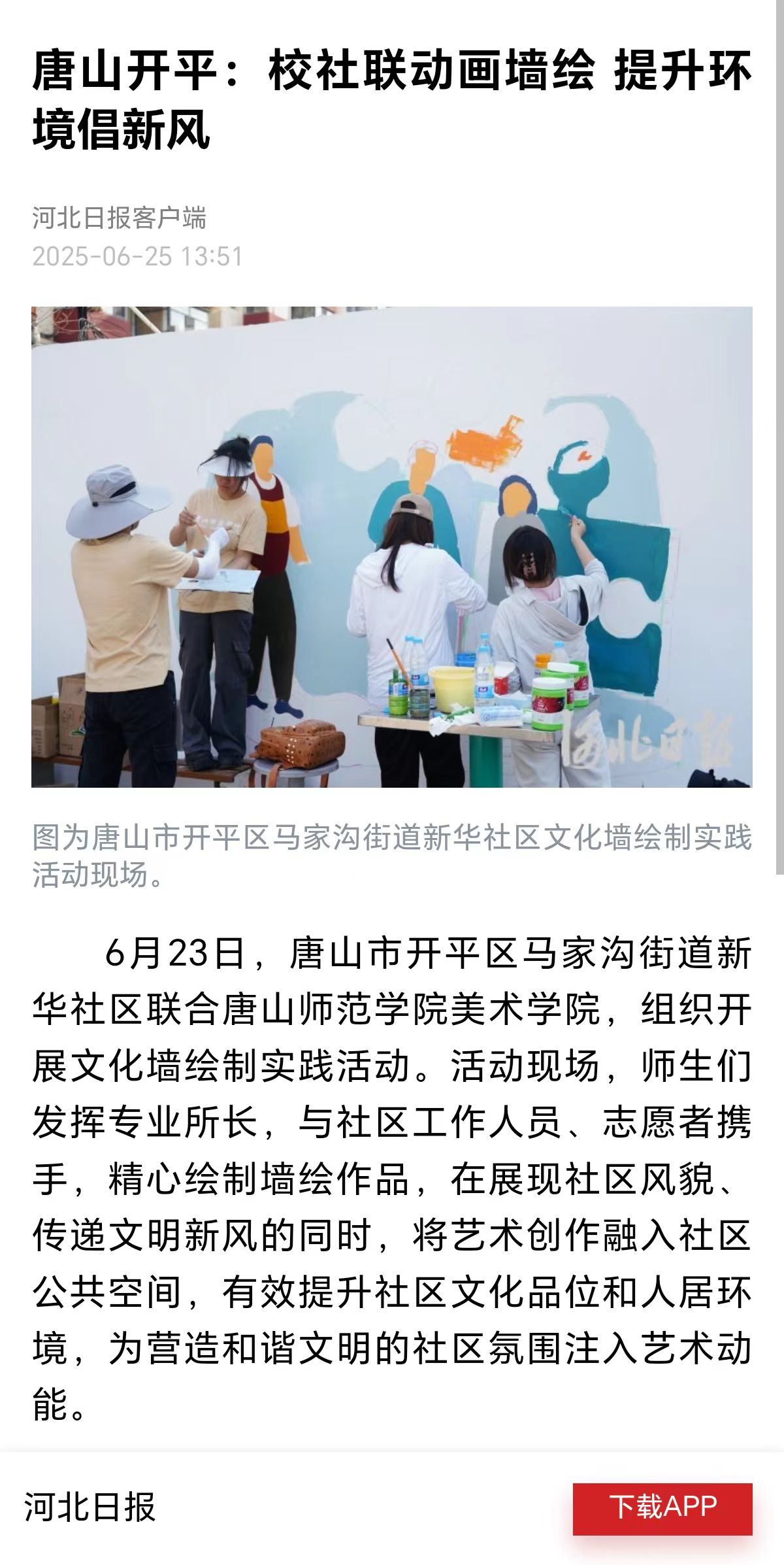 6月23日,唐山市开平区马家沟街道新华社区联合beat365在线唯一官网美术学院,组织开展文化墙绘制实践活动。