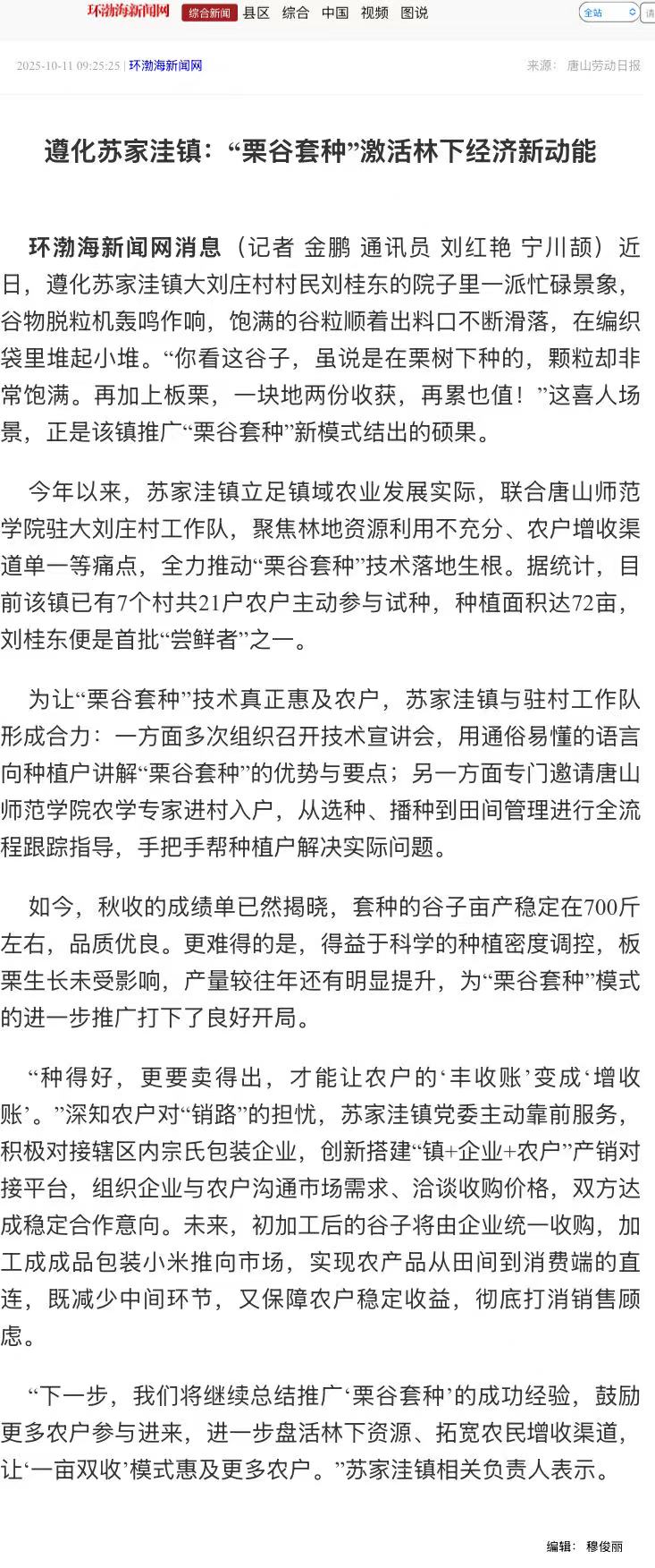 遵化市苏家洼镇“栗谷套种”激活林下经济新动能,让土地“一亩双收”。