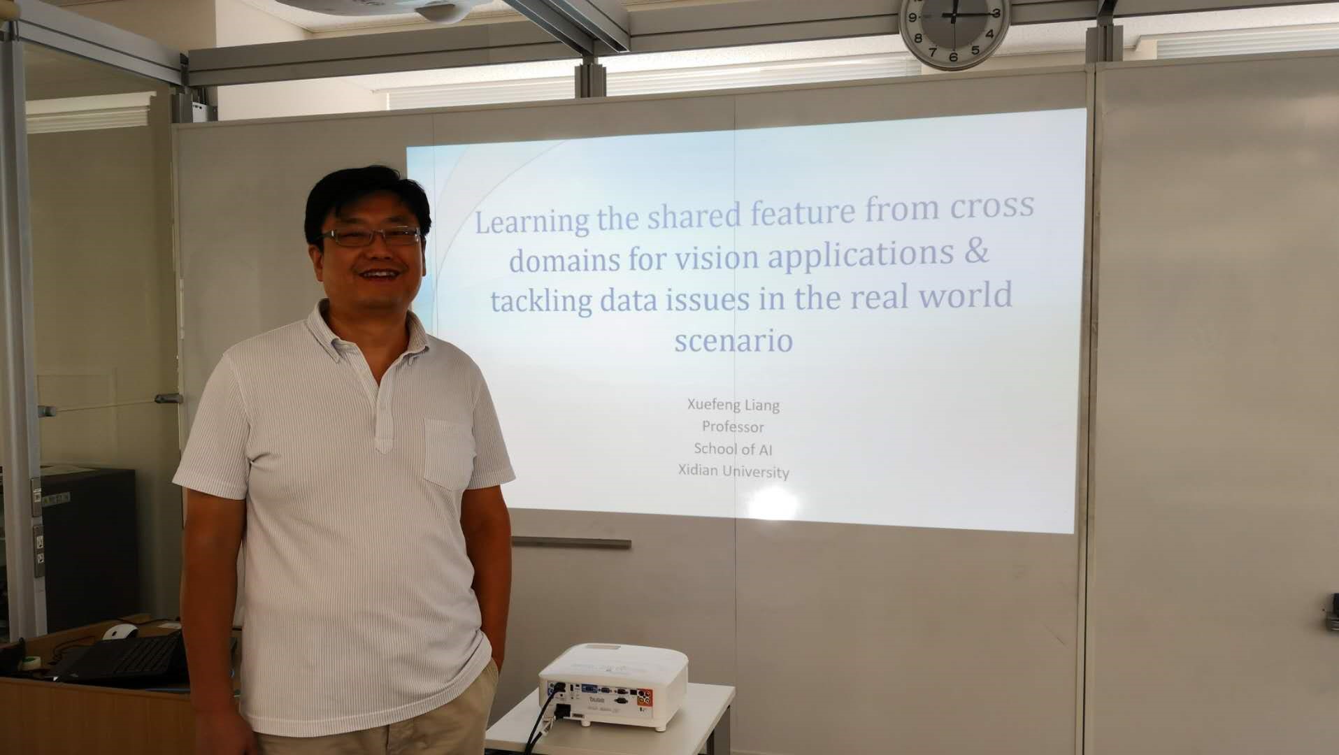 2018年8月30日,pa集团官网入口梁雪峰教授受邀在日本京都大学综合生存会馆做了题为“Learning the shared feature from cross domains for vision applications & tackling data issues in the real world scenario”的学术报告。