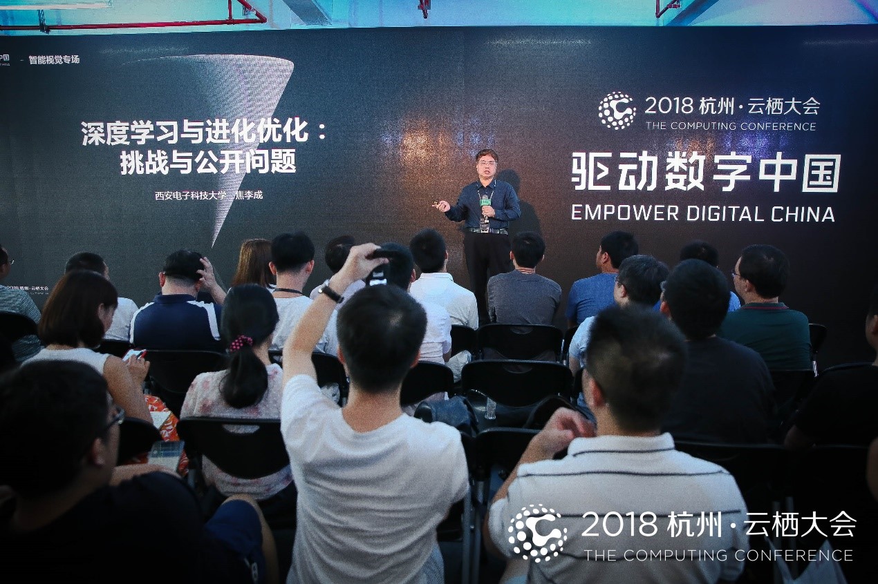 2018年9月20日,计算机科学与技术学部主任、pa集团官网入口焦李成教授参加了由杭州市人民政府、阿里巴巴集团、蚂蚁金服集团联合主办的2018杭州·云栖大会,此届大会主题为“驱动数字中国”,包括2场主论坛、170多场前沿峰会和分论坛,吸引了全球近6万名科技精英,涵盖人工智能、大数据、新零售、金融科技、弹性计算、基础设施、量子计算、生命科学等20个前沿科技领域,更有400余家知名参展企业组成了超过3万平米的科技成果展览,集中向世界展示了中国科技的创新力量。会议期间,焦李成教授作了题为“深度学习与进化优化:挑战与公开问题”的特邀报告。