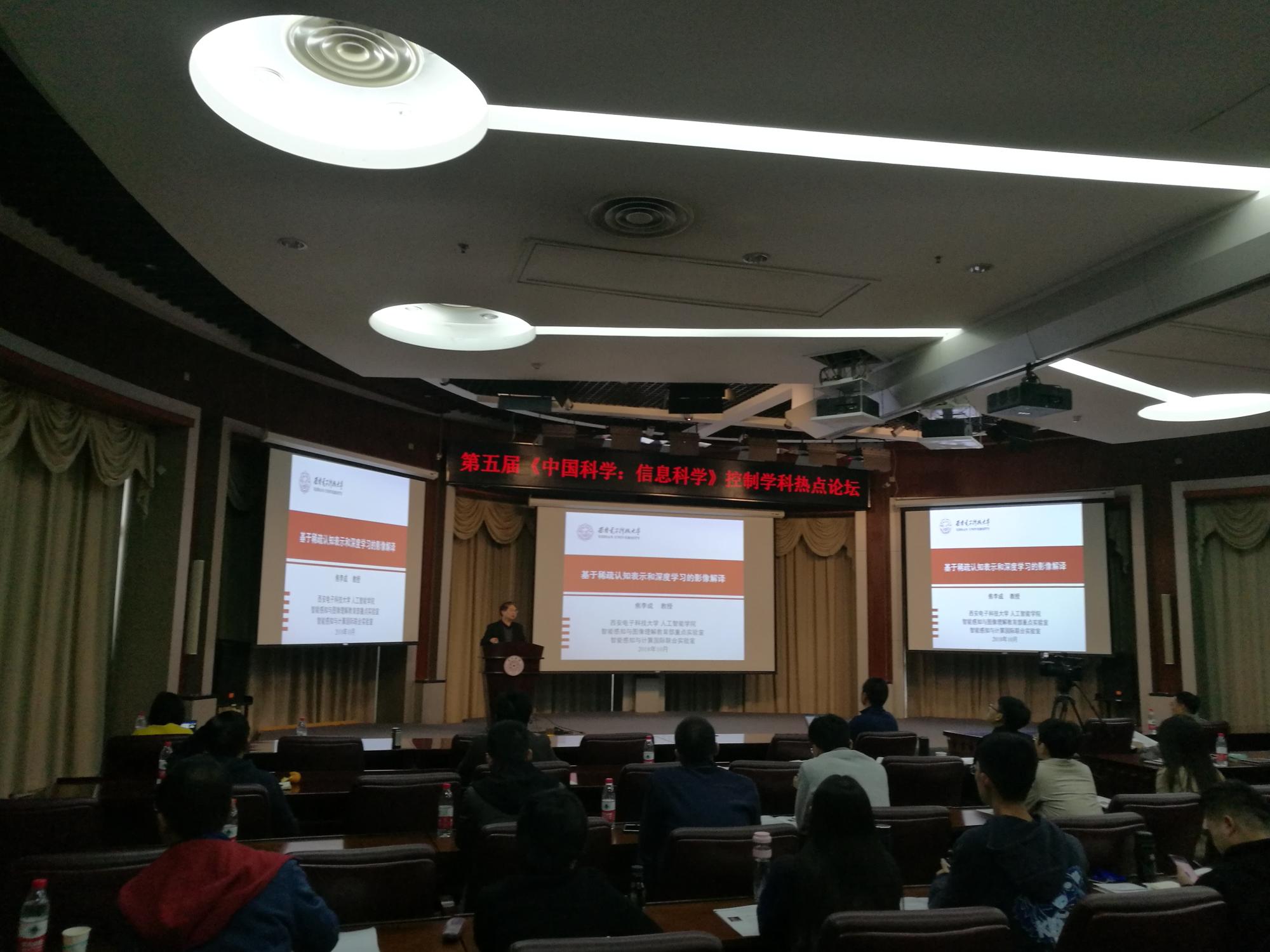 2018年10月20日,计算机科学与技术学部主任,pa集团官网入口焦李成教授受邀于清华大学参加第五届《中国科学 信息科学》控制学科热点论坛,并作了题为“基于稀疏认知表示与深度学习的影像解译”特邀报告。