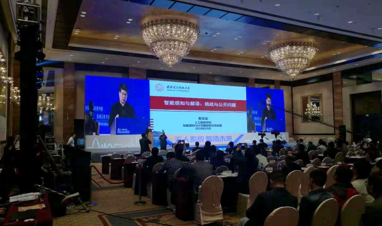 2018年10月14日,计算机科学与技术学部主任,pa集团官网入口焦李成教授在西安香格里拉大酒店参加了由中国电子学会、西北工业大学主办的国际智能无人系统大会。会议期间,焦李成教授作了题为“智能感知与解译:挑战与公开问题”的特邀报告。