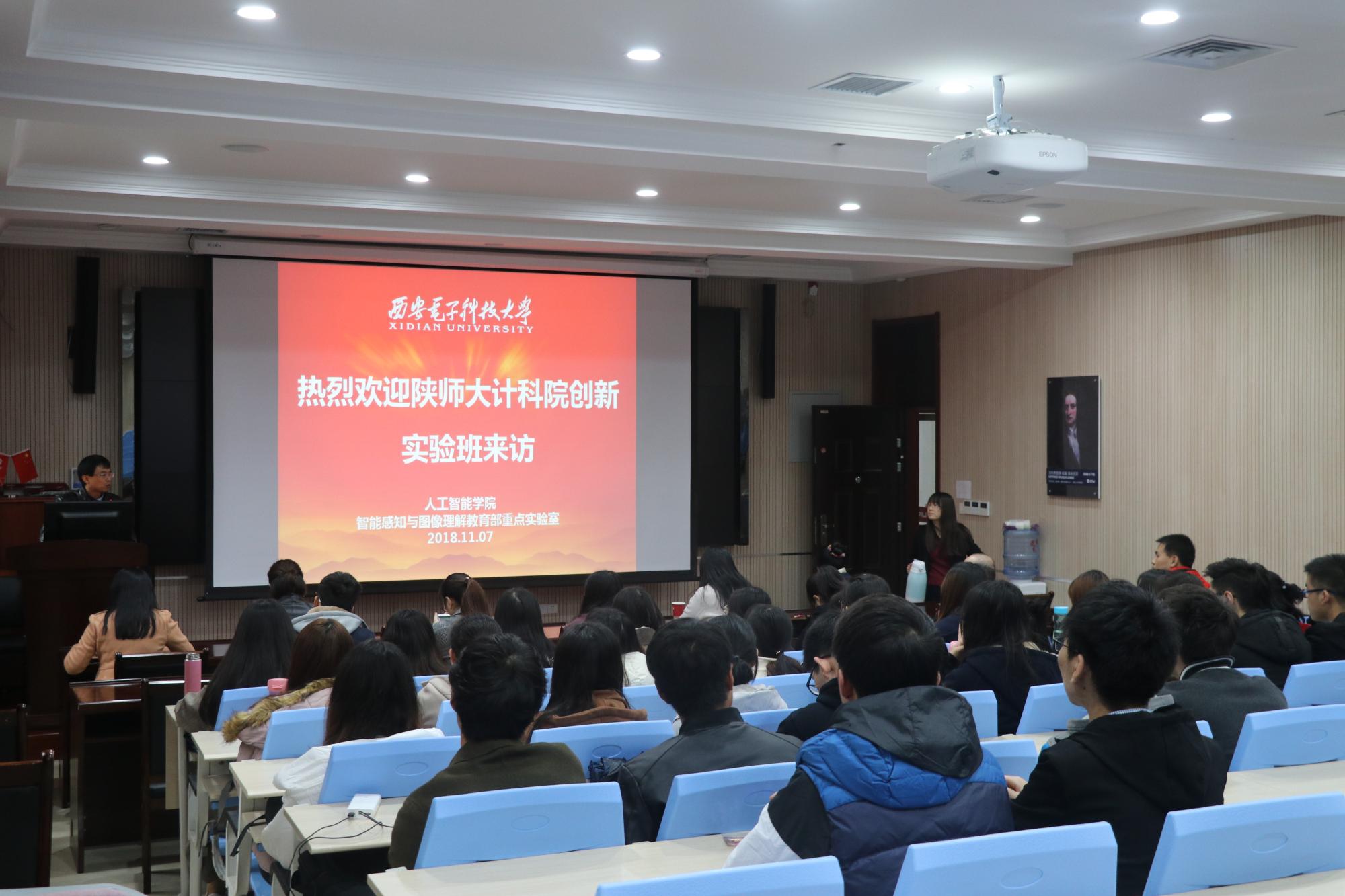 为进一步提高本科生的自我发展意识,强化学生的自主自强能力,11月7日,陕西师范大学计算机科学学院2016级计算机科学与技术创新实验班40余名同学在班主任武杰老师的带领下赴PA集团官网开展交流学习。PA集团官网计算机科学与技术学部主任焦李成、智能感知与图像理解教育部重点实验室副主任侯彪、张丹,师大计科院副院长马苗、党委副书记袁冰、计创班班主任武杰、任杰,学生辅导员郭康凌、陈应权、安琪以及pa集团官网入口的部分老师和博士研究生参加了交流活动。本次活动作为陕师大计算机科学与技术创新实验班“我的大学 我的路”主题系列活动之一,旨在引导学生要走出去,积极参与国际竞争,要树立强化自主学习、拓展国际视野和敢于实践创新的意识。