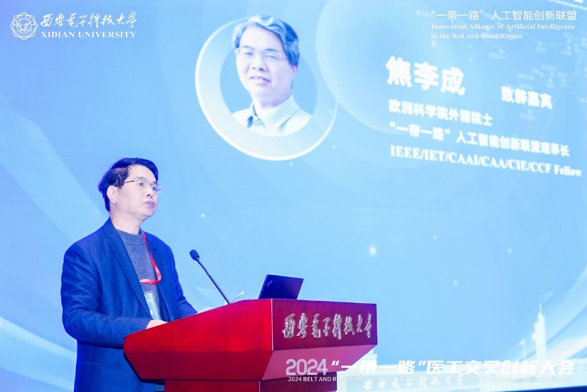 欧洲科学院院士、“一带一路”人工智能创新联盟理事长焦李成在致辞中表示,从改进诊断、优化治疗策略到加速药物发现,新工科在重塑医疗行业的同时也为医疗领域带来了重大进步和机遇,以智能医学大模型为代表的理论研究在总结医学摘要、回应患者情绪和鉴别诊断病情等方面具有巨大的潜力。本次大会将进一步探讨新工科在生命科学、生物制药、基因工程、健康计算、个体化精准医疗等领域的应用问题,为推动陕西以及“一带一路”沿线国家的医疗高质量发展做出贡献。