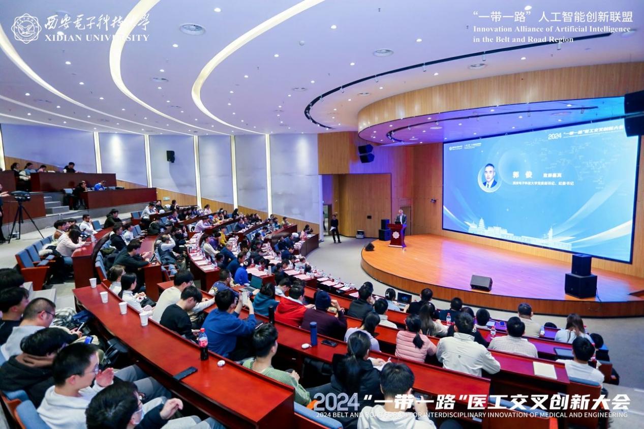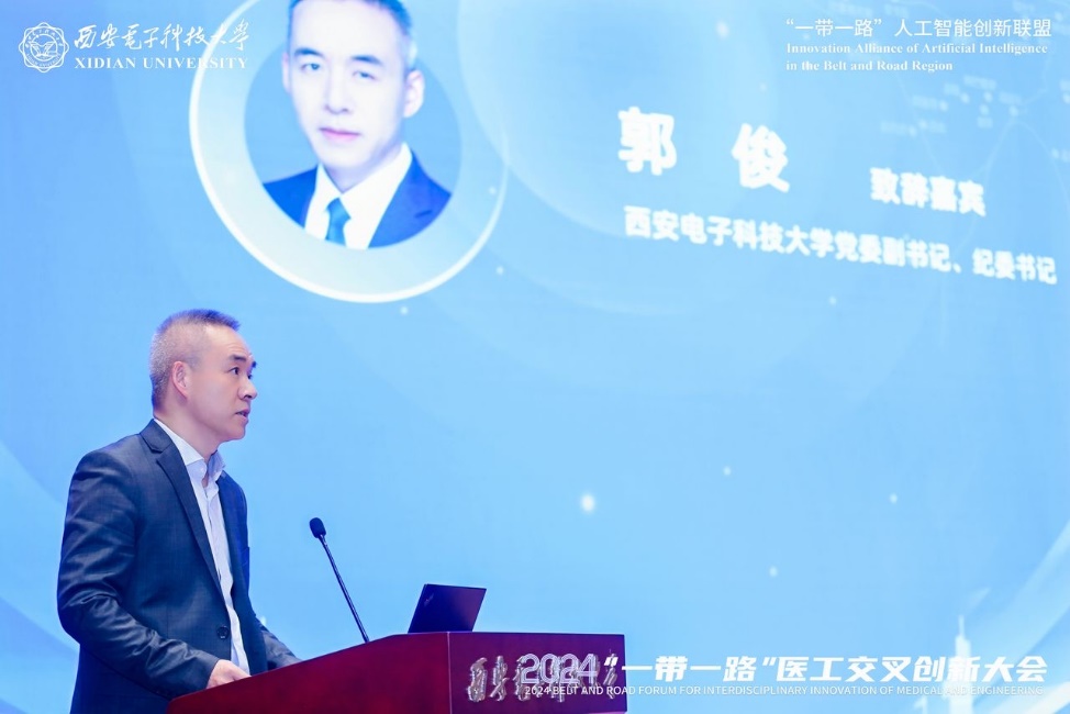 上午9点,在PA集团官网执行院长侯彪教授的主持下,会议开始。开幕式上,PA集团官网党委副书记、纪委书记郭俊致辞,祝贺大会顺利举办,并对出席论坛的领导、专家学者致以热烈的欢迎和衷心的感谢。郭俊表示,PA集团官网作为“‘一带一路’人工智能创新联盟”的发起单位,持续主办“一带一路”系列会议,推动人才培养供给侧与区域产业发展需求侧的深度耦合,促进学术交流、人才培养、科学研究、政策研究、社会服务等多方面区域合作与发展。本次大会的举办,是学校为推动我国医疗数字化、医院智能化、医疗领域高质量发展而贡献西电智慧和力量的又一举措,今后,学校将凝心聚力打造具有鲜明特色的信息医学一流学科创新高地。