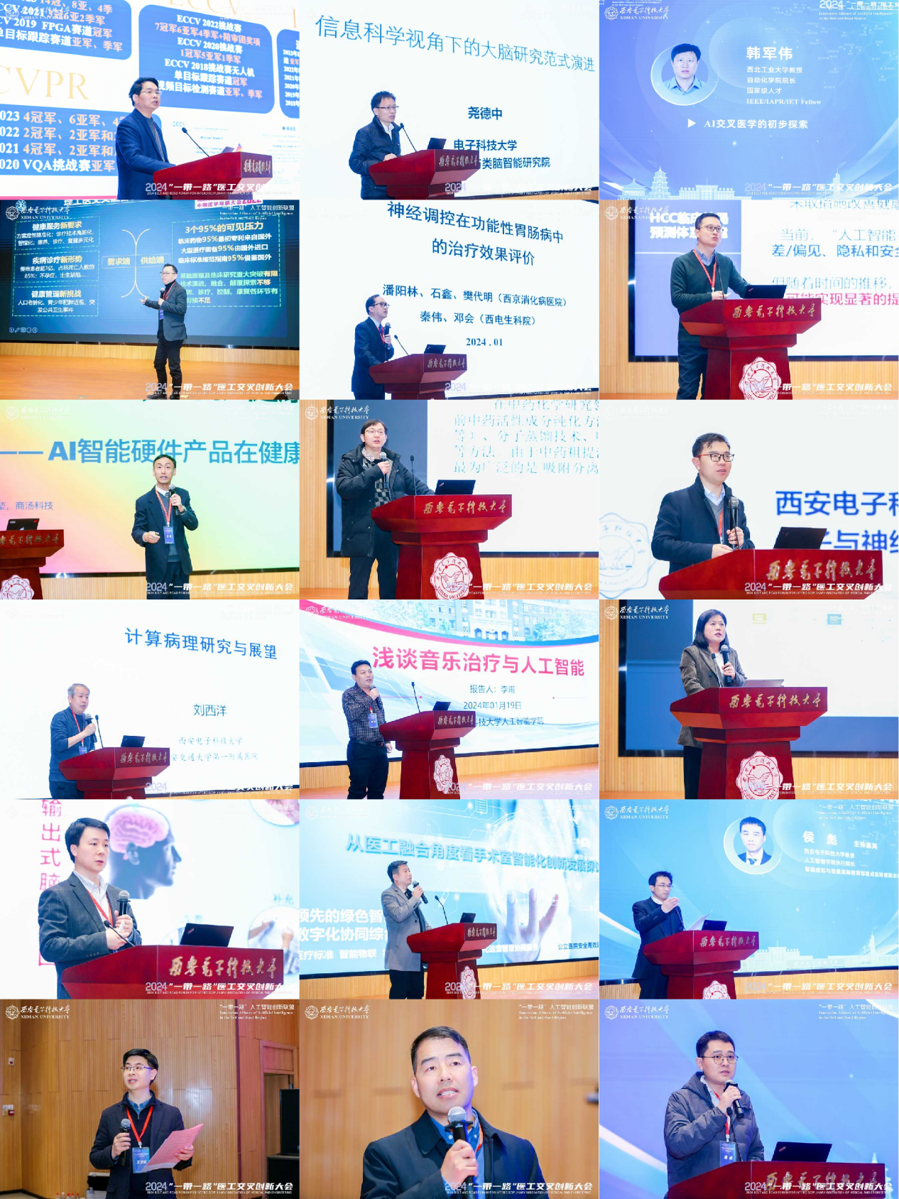 大会特邀了14位专家学者作主旨报告:欧洲科学院外籍院士、“一带一路”人工智能创新联盟理事长、IEEE/IET/CAAI/CAA/CIE/CCF Fellow焦李成院士,电子科技大学神经信息教育部重点实验室主任、国家级人才、AIMBE Fellow尧德中教授,西北工业大学自动化学院院长、国家级人才、IEEE/IAPR/IET Fellow韩军伟教授,西安交通大学生命学院院、国家级人才徐峰教授,西安交通大学第一附属医院副院长、国家级青年人才张谞丰教授,西京医院消化内科主任医师、国家级青年人才、中国青年科技奖获得者潘阳林教授,PA集团官网生命科学技术学院执行院长、国家级人才王忠良教授,陕西中医药大学、世界中医药联合会中药系统与工程委员会常务理事左振宇教授,商汤科技联合创始人马堃博士,PA集团官网副院长、国家自然科学奖获得者李甫教授,PA集团官网软件工程研究所常务所长刘西洋教授,PA集团官网先进医学成像与智能诊疗国际联合研究中心主任张毅教授,PA集团官网智能科学与技术系主任缑水平教授,医标智联数字科技有限公司总经理张祥。他们围绕“信息科学视角下的大脑研究范式演进”、大模型时代的医工交叉创新面临的挑战与思考、人工智能与临床问题研究以及AI交叉医学的初步探索等方面为我们带来了一场精彩纷呈、紧贴前沿的专题报告,全方位、多角度地呈现了人工智能领域与医学交叉方向的现状及未来。
